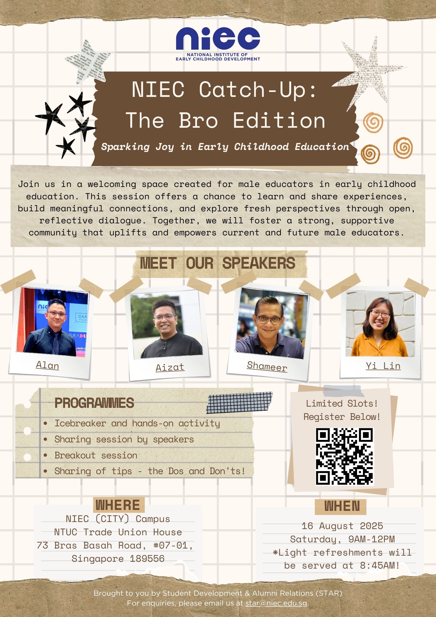Join us in a welcoming space created for male educators in early childhood education. This workshop offers a chance to share experiences, build meaningful connections, and explore fresh perspectives through open, reflective dialogue. Together, we’ll foster a strong, supportive community that uplifts and empowers current and future male educators. Click on the poster below to register! To learn more about our speakers, click HERE.