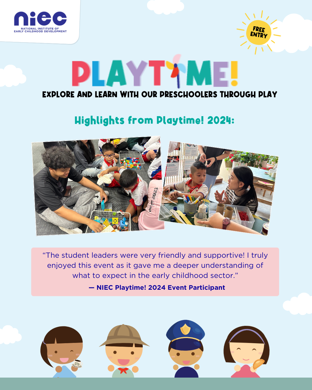 - If you attend NIEC’s Playtime! Event on 11 June, you’ll receive a Certificate of Participation to support your EAE portfolio (Sign up here!)
